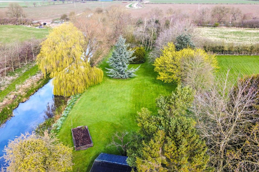 The property stands particularly well at the end of the lane which terminates at the millrace. A private driveway leads to a generous parking area in front of a substantial double garage 18'7" x 18'5" with attached workshop. Immediately to the rear of the house is a patio area, two useful brick built stores. The gardens extend beyond the garage being mainly lawned with a wide frontage to the trout stream, include a number of mature trees and considerable privacy.