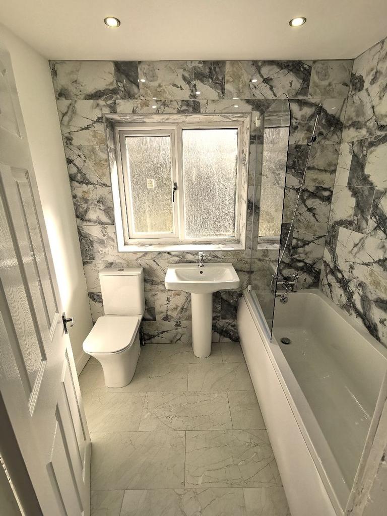 Double glazed window to the rear aspect. Wall & floor tiles. Ceiling light points. WC. Wash basin. bathtub with shower mixer.