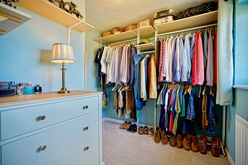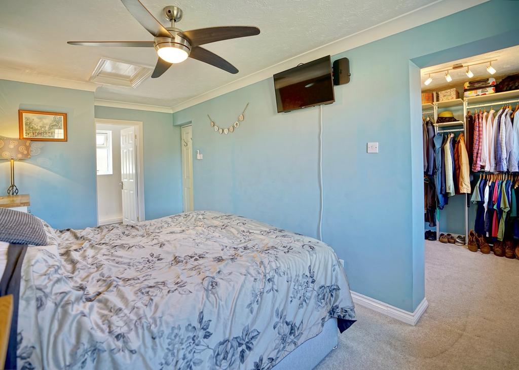 UPVC window to rear aspect, single panel radiator, wardrobe range with hanging and shelving.