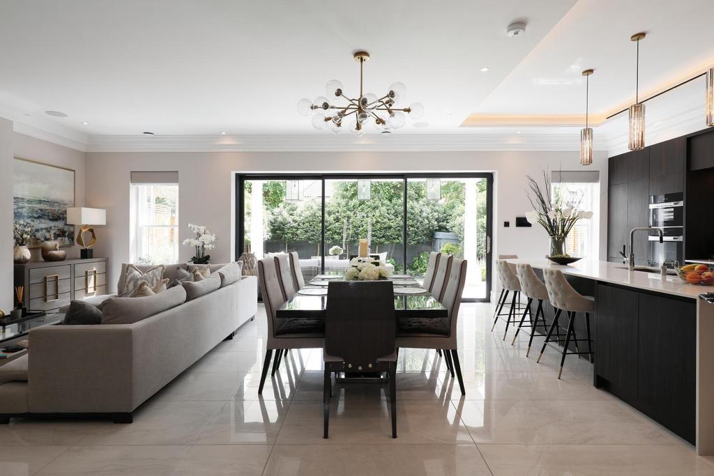 Spread across the upper floors are five well proportioned, bright and airy bedrooms, all with built-in wardrobes and four with luxurious en suites in addition to the family. Of particular note, is the generous principal suite that spans the entire rear elevation of the property with a dressing room. On the top floor there is also a gym and games/cinema room with a built-in bar, ideal for entertaining and relaxing.