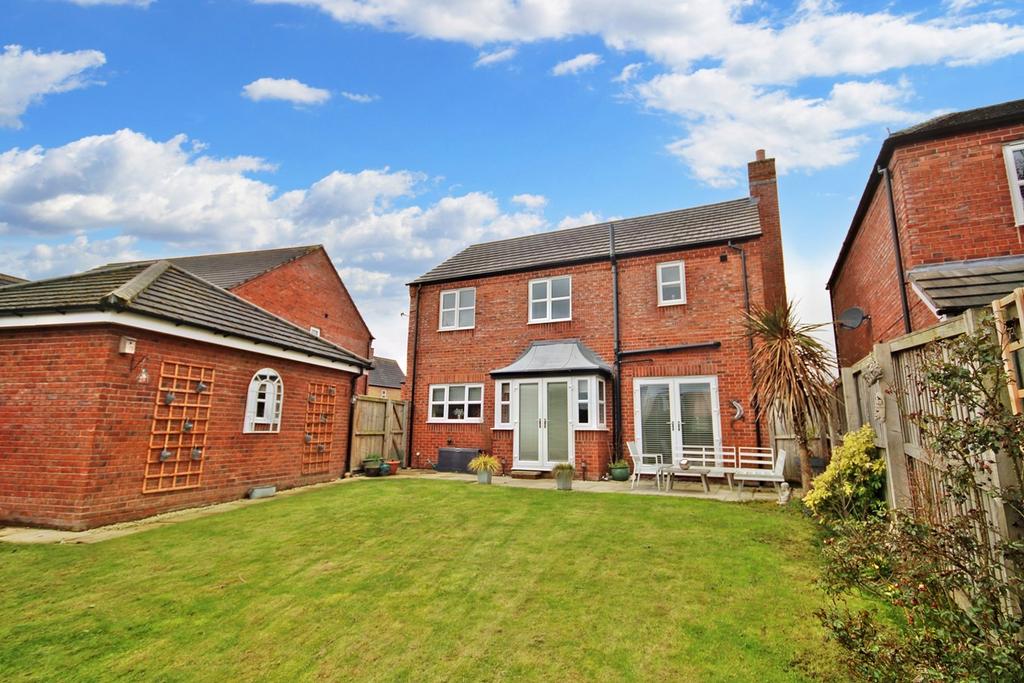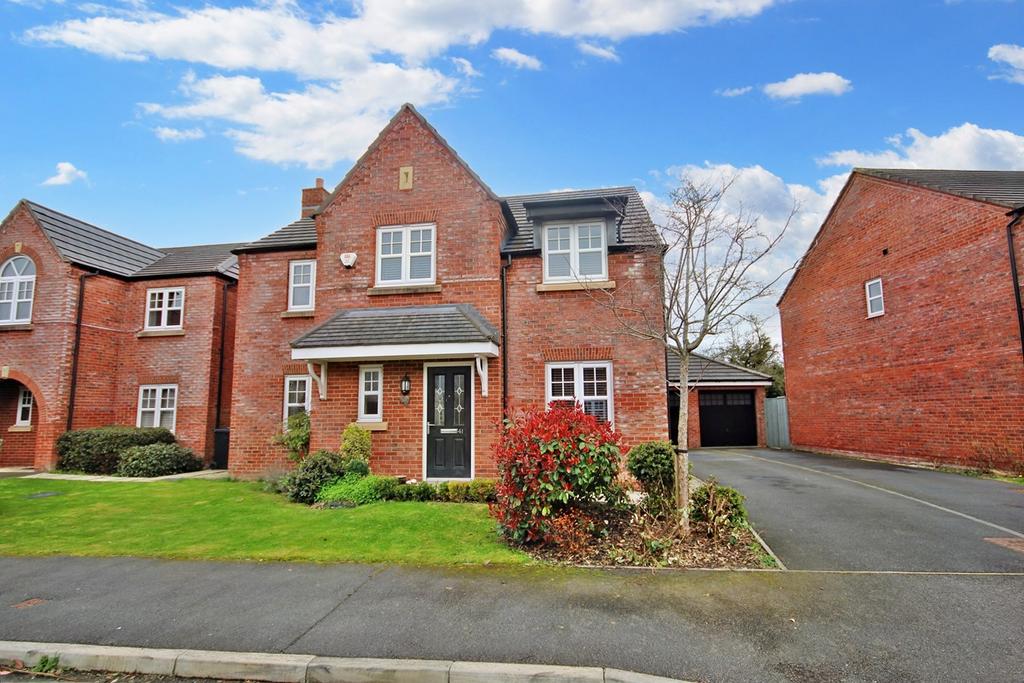 A truly stunning four bedroom detached located on the desirable Sandford Village development in Bruche. There are amenities and Bruche Park within walking distance and motorway networks are a short drive away. Over two storeys in brief it comprises; porch into the entrance hall with stair access and w.c; a spacious and light dual aspect lounge with fireplace and French Doors to the rear; dining room which is currently utilised as a second sitting room; a superb contemporary kitchen/breakfast room with wall/base units, oven/hob, fridge and freezer included, handy cupboard and French Doors leading out to the garden; and a utility room with spaces for a fridge, washing machine and tumble dryer. Upstairs houses landing; a good sized fourth bedroom; two further double bedrooms with fitted wardrobes; and an impressive master bedroom with fitted wardrobes and en-suite shower room. Externally, the property has gardens front and rear; the latter is lovely and private, with attractive borders and patio area. Parking is via the driveway to the side and a single garage.