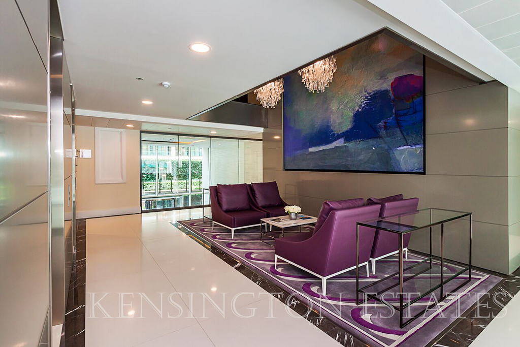Apartment benefits from comfort cooling (temperatures regulated from 17C to around 23C), zoned underfloor heating, high spec features that include: Swarowsky crystall lighting to the bathroom, bathroom TV tree, Dornbracht fittings, Villeroy Bosch bathware, Miele kitchen appliances, luxury composite material flooring to the hallway, 80% wool carpet to the bedroom, platinum oak engineered flooring to the reception room, exclusive doors, ceiling-to-floor windows giving plenty of natural light.