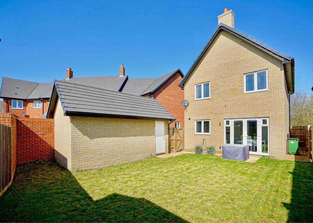 The front garden is lawned with a selection of evergreen shrubs and ornamentals fronting a pleasant green. The south facing rear garden is neatly arranged, primarily lawned enclosed by a combination of panel fencing with gated access to the front, outside tap and lighting. There is a Oversized Single Garage with single up and over door, power, lighting and private door to the side and parking for two to three vehicles to the front on the brick paviour driveway.
