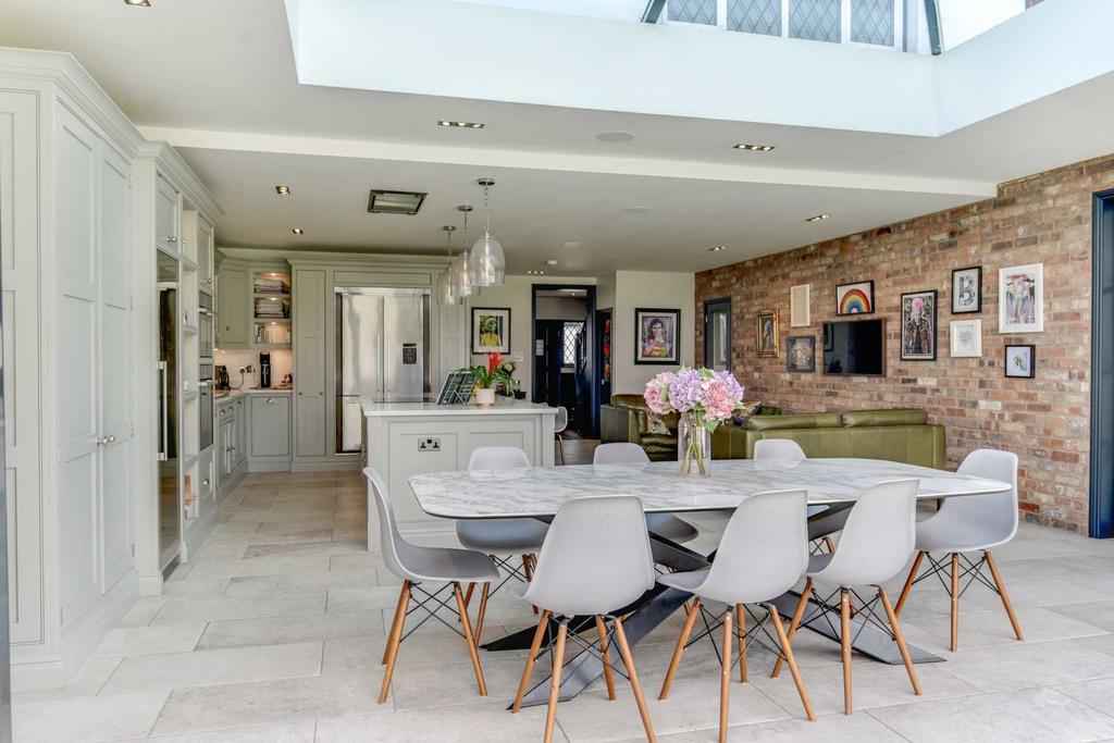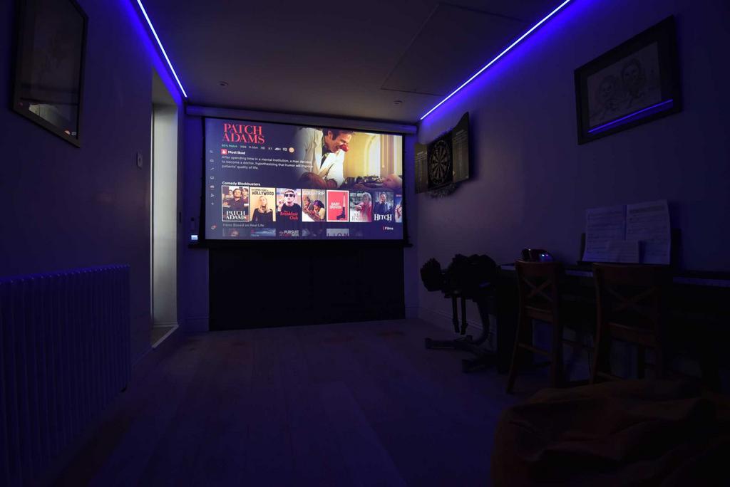 Downstairs, off the spacious hall is the first of three living areas. With its couches and TV screen the Snug provides a separate space to escape from the children or just watch something different on television. There's a downstairs WC then an open plan kitchen/living and dining area which is our favourite space to hang out. The kitchen is equipped with all modern amenities and the dining table seats up to 10 guests, making it a great space for a family meal or dinner party with friends. There are also comfy sofas, to relax and unwind and a second flat screen TV. Just off this room is a separate study/work space and a utility with washing machine and room to hang coats. The floor to ceiling bi-fold doors lead out to the rear garden which has a seating area around a gas fireplace, a separate BBQ, table tennis table and large HOT TUB. When the doors are open the garden becomes an extension of the house, perfect for Al Fresco dining. Another great feature is the CINEMA room. A great place to watch a movie or sports on the big screen and equipped with games consoles to keep younger guests entertained. The house has five double bedrooms. The master bedroom has a king size bed and large ensuite bathroom with His n Hers basins. There are two further double rooms on this floor and a separate family bathroom. On the top floor there are two further bedrooms, one with a King, one with a double and a third bathroom with a shower. There's room for up to three cars to park on the front drive of the house.