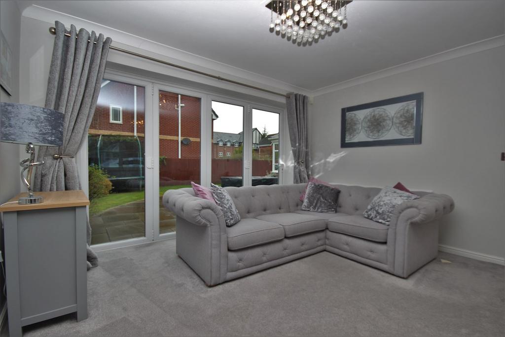 Carpet to floor, ceiling light, radiator, gas fire in surround & UPVC double glazed patio doors leading to rear garden.
