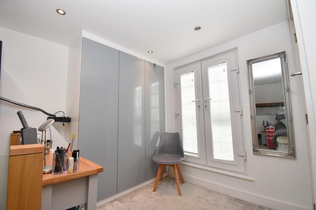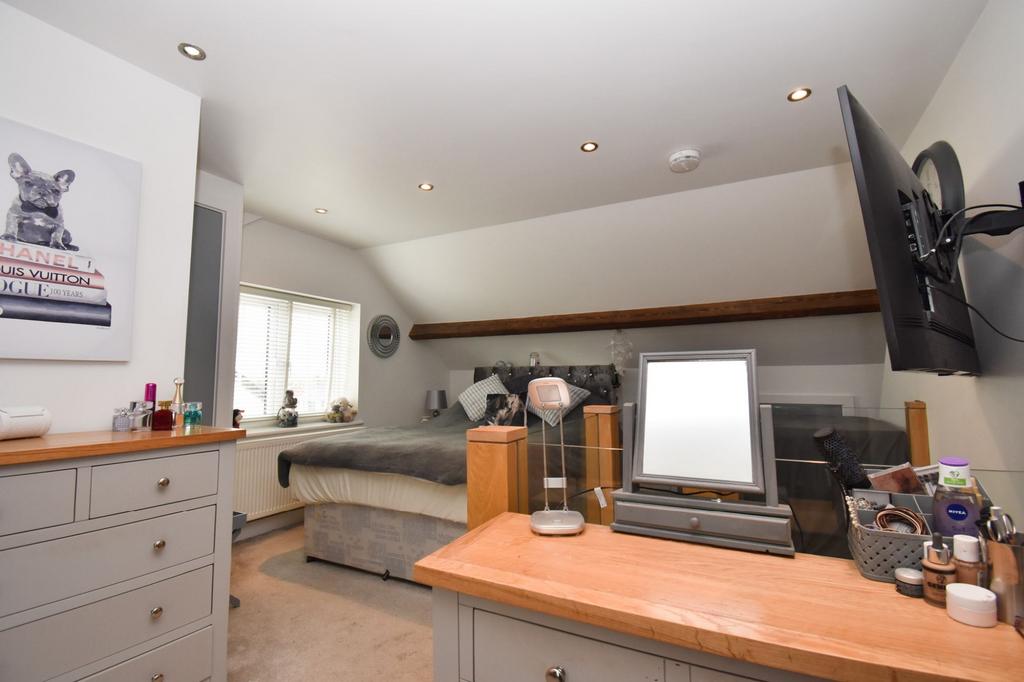 The second floor has been carefully adapted to make full use of the space and create a beautiful and well proportioned master bedroom with French doors providing uninterrupted views over the fields behind and a fully fitted three piece en-suite shower room