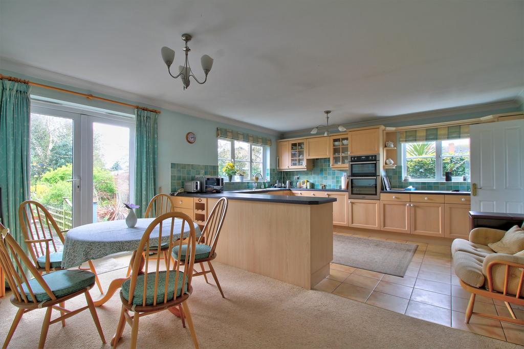 Look inside and you will find a spacious entrance hall with built-in cloaks cupboard. The glorious lounge having a feature Adam style fireplace and patio doors overlooking the garden and fields beyond, a fantastic fitted living dining kitchen fitted with a range of wall and base units, work surfaces, sink and drainer unit, built-in double oven, hob and extractor, some integrated appliances, double glazed window to rear and side, double doors to the garden, part tiled walls, radiators and door to utility room. The utility room having wall and base units, plumbing for washing machine, work surfaces, door to garden, window to side and door to cloakroom/WC. The cloakroom having low-level w.c., wash hand basin, radiator, and window to side. There are four good size bedrooms, the master being of excellent size with fitted wardrobes, double glazed window overlooking the garden, radiator and door to the ensuite. The ensuite is fitted with shower cubicle, pedestal wash hand basin, w.c., part tiled walls, tiled floor, ladder radiator and shaver point. There are two further double bedrooms with radiators and a single bedroom with radiator, all having windows to the front aspect. The main bathroom is fitted with a bath, wash hand basin, w.c., part tiled walls, window to side aspect, airing cupboard, electric heated towel rail and radiator.
