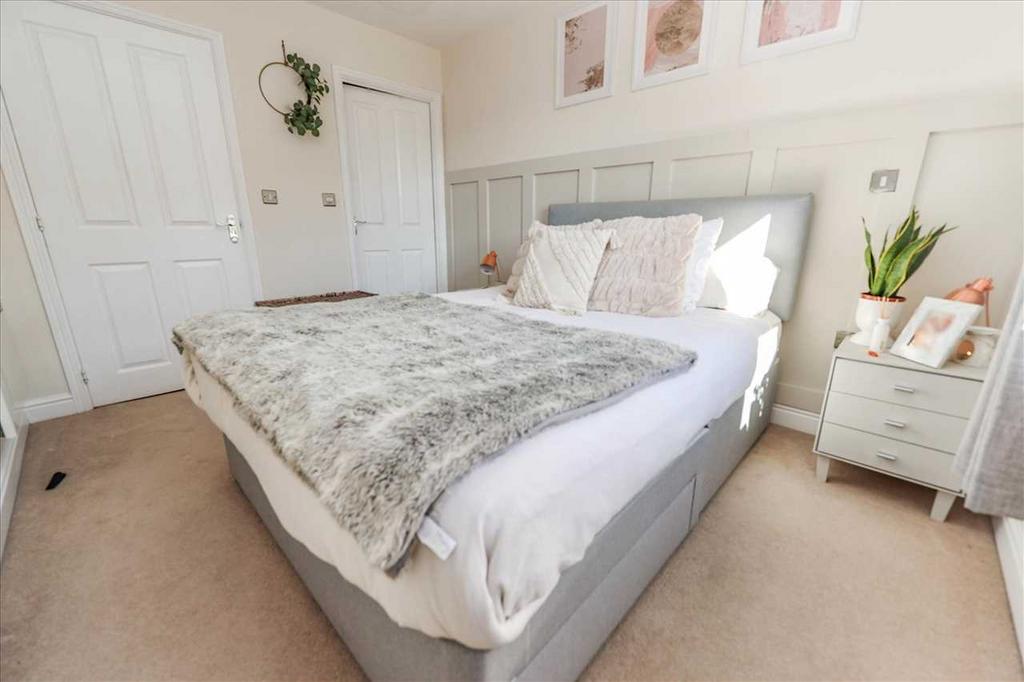 With fitted carpet, electric heater, double wardrobe, and double glazed window to the front aspect.