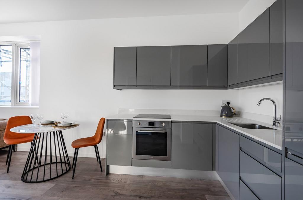 Liongate House. A private, gated development with a selection of 1 and 2 bedroom apartments on various floors A private, gated development close to Guildford City centre with great access to the A3. Elevation New Homes are delighted to offer for sale this large open plan 2 bedroom First floor apartment. This apartment has a good size Kitchen/lounge and is finished to high standard including, high gloss handle less kitchen cabinets, Quartz stone work tops, Smeg appliances, non scratch wood flooring, USB points, this apartment comes with a fully tiled bathroom as standard. Externally there is secured allocated parking with some having electric charge points.