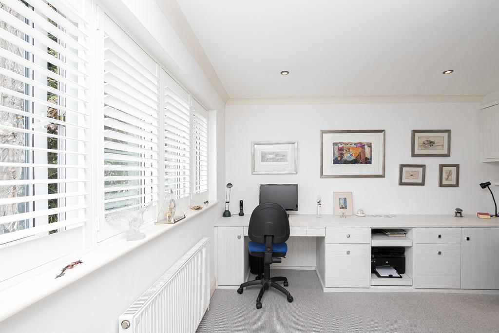 BEDROOM 4 14' 10 (Max)" x 12' 10 (Max)" (4.52m x 3.91m) Currently comprehensively fitted as a study and with fitted wardrobes.
