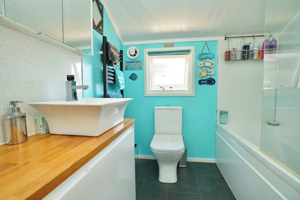 Re-fitted in a three piece suite with low level WC, counter top mounted wash hand basin with cupboards below, bath with mixer shower unit over, shower screen with splash panels, sensor light, heated towel rail.