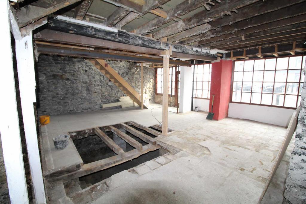 In Brief - A three story commercial property situated in a prominent location on the main square in the market town of Llanrwst. The property has undergone a scheme of external works including a new roof, re-pointing to the gable end and re-painting of the front elevation. The inside has been completely stripped down to the stone walls allowing for immediate development. The property is located within permitted development which gives planning for a maisonette on the top two floors.