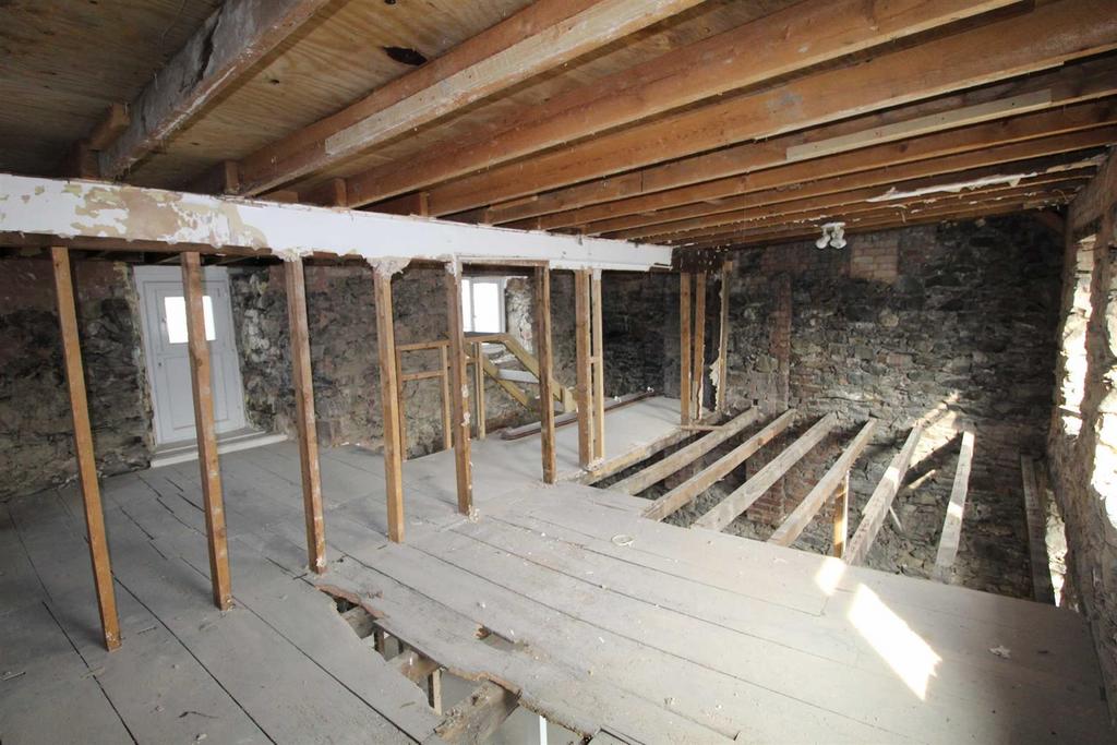 A three story commercial property situated in a prominent location on the main square in the market town of Llanrwst. The property has undergone a scheme of external works including a new roof, re-pointing to the gable end and re-painting of the front elevation. The inside has been completely stripped down to the stone walls allowing for immediate development. The property is located within permitted development which gives planning for a maisonette on the top two floors.