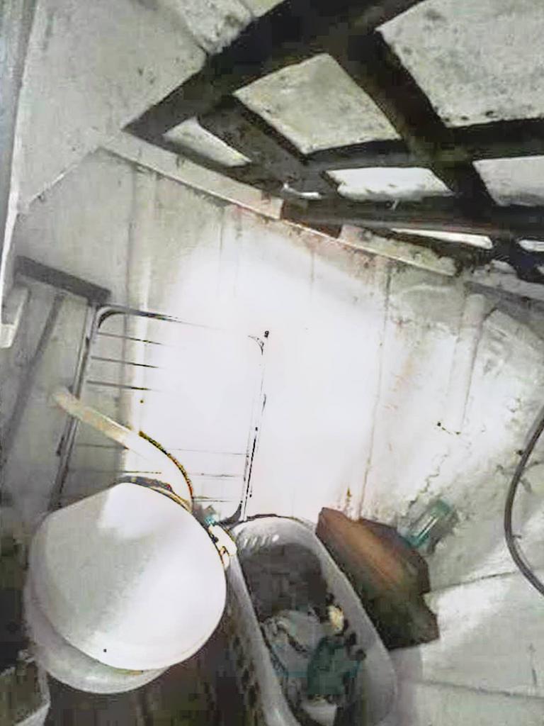 The galley is compact yet functional, with a sink, gas cooker, and worktop space with storage. Forward of the saloon is a wet room fitted with a sea toilet and shower.