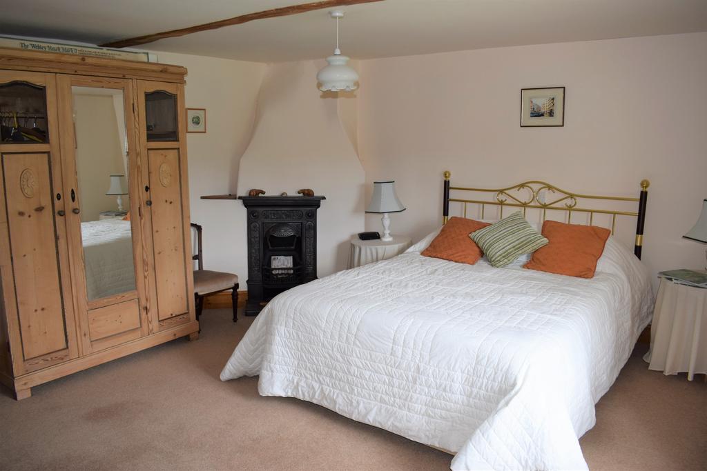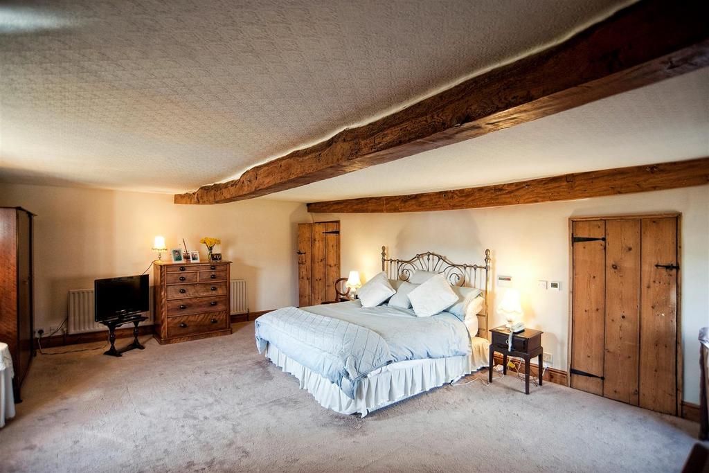 One of the most distinctive bedrooms the agent has seen with magnificent, exposed original post and truss work, ceiling beam, 20 pane sash window overlooking the front gardens and corner chimney breast with inset decorative cast iron fireplace.