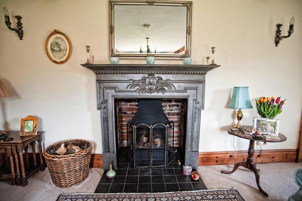 A superbly lit formal reception room with 12 pane sash windows to the front and side, 2 ceiling beams, 3 radiators and outstanding polished cast iron fire surround with foliate decoration and brick lined fireplace with glazed tiled hearth and canopied grate.