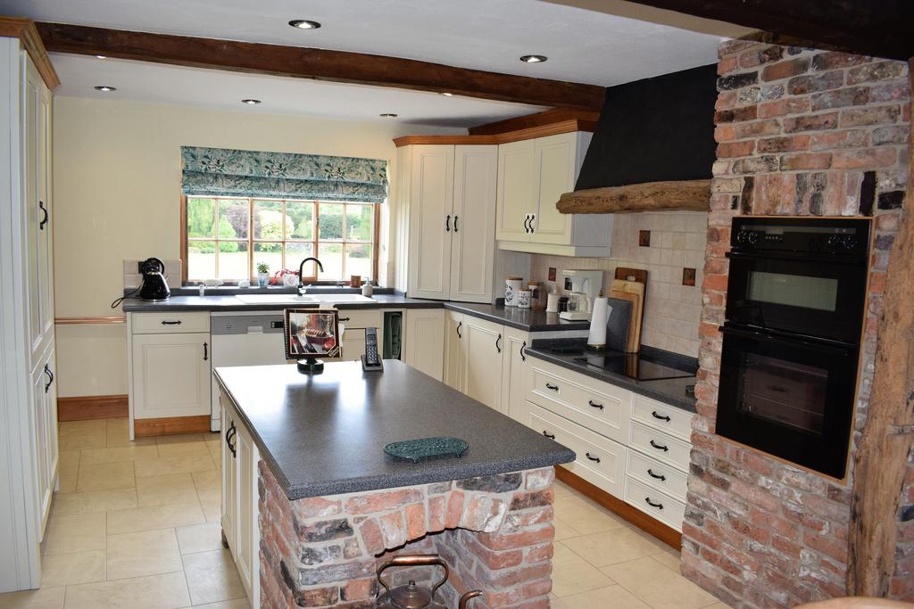 The undoubted informal heart of the home with a deep brick lined arched recess housing the Rayburn and sliding sash windows to 2 aspects. The kitchen area is appointed with a range of white fronted units with complimentary worksurfaces and includes a brick built central island unit, integrated dishwasher, inset electric hob with decorative extractor canopy over, built in double oven, tiled splash areas and 1 1/2 bowl vinyl sink unit. The retention of ceiling beams and Amtico flooring to the preparation area retains the traditional feeling.