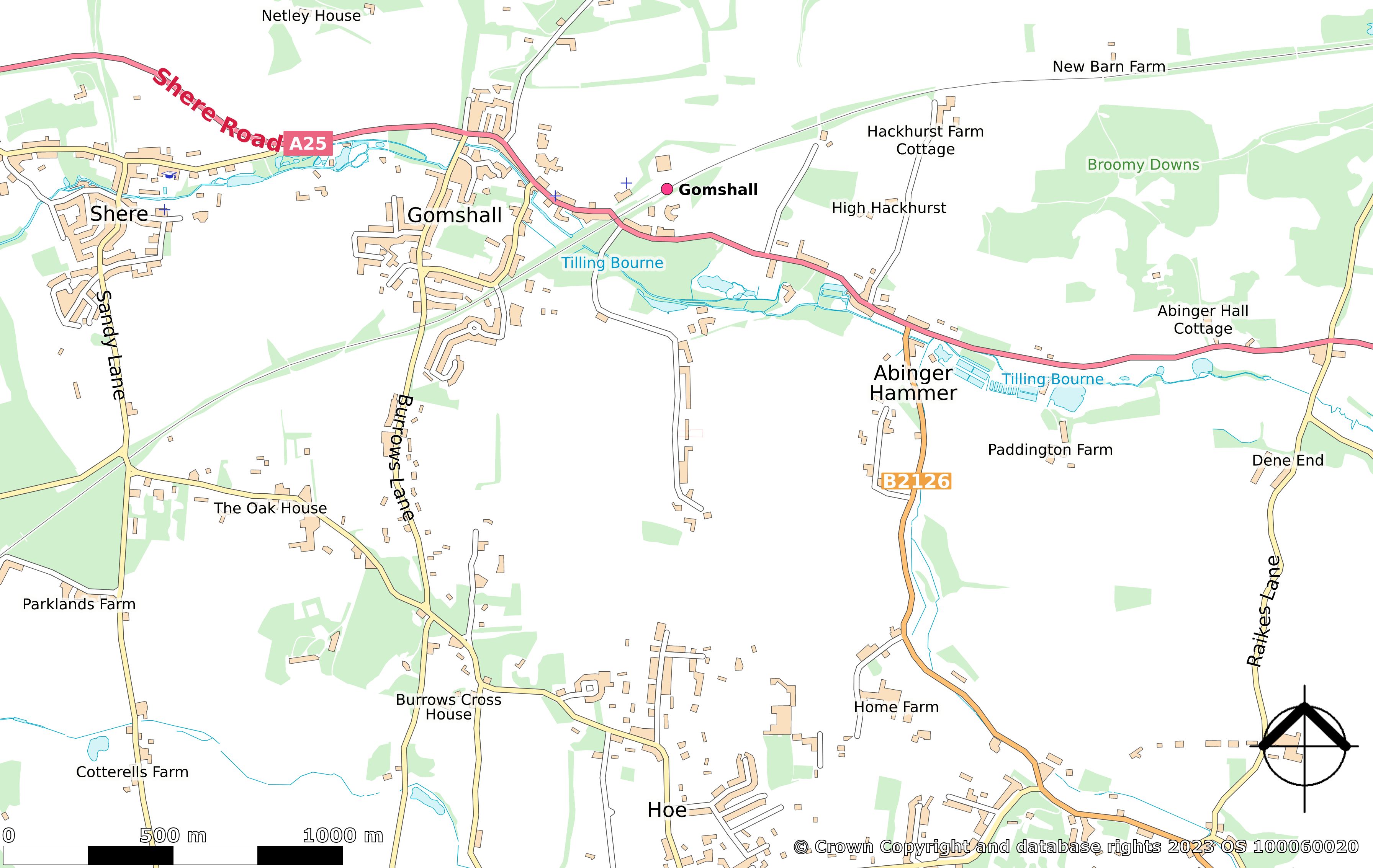 - Circa 0.5 mile walk to Gomshall station & village (with pubs, supermarket & other shops)
