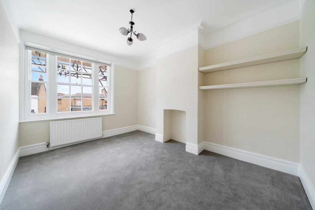 The flat is accessed by a private front door that leads into a spacious entrance hall with large storage cupboard and hanging space. This continues upstairs to the landing from which there is a newly fitted bathroom with shower over the bath. The hallway flows through to a newly fitted kitchen with a large window to the side with a spectacular view over the tree lined houses of the Village. There is a bright and sunny reception room with period fireplace and overlooks the flat roof to the front of the property. Two very good size double bedrooms complete this flat, one overlooking the front and the second overlooking the rear.