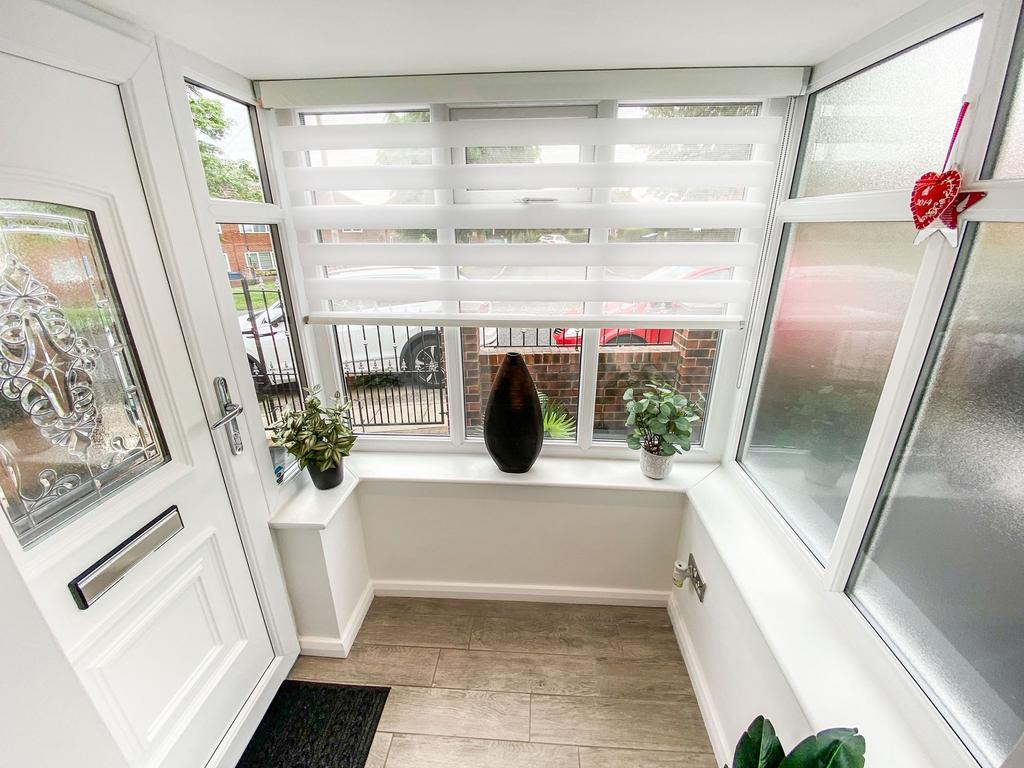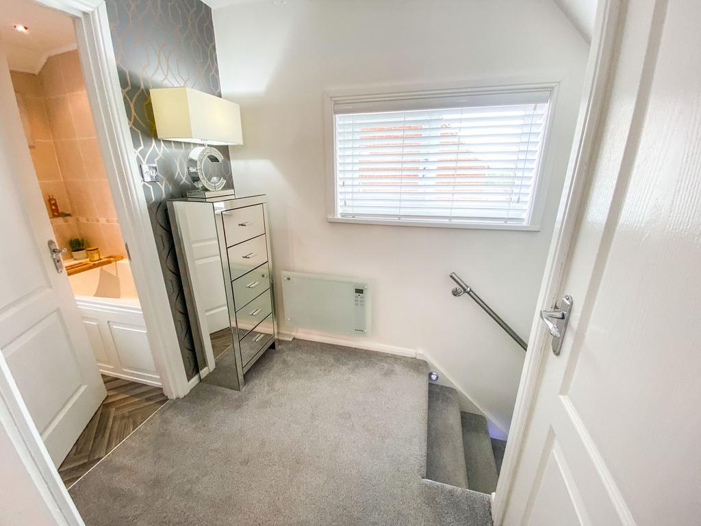 Window to the side elevation, walk in storage cupboard with electric point and wall mounted heater.