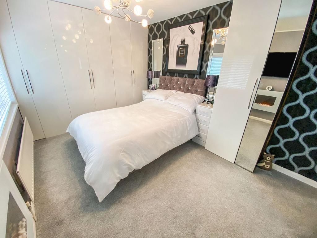 Double bedroom with bespoke fitted wardrobes and two windows to the front elevation. Radiator.