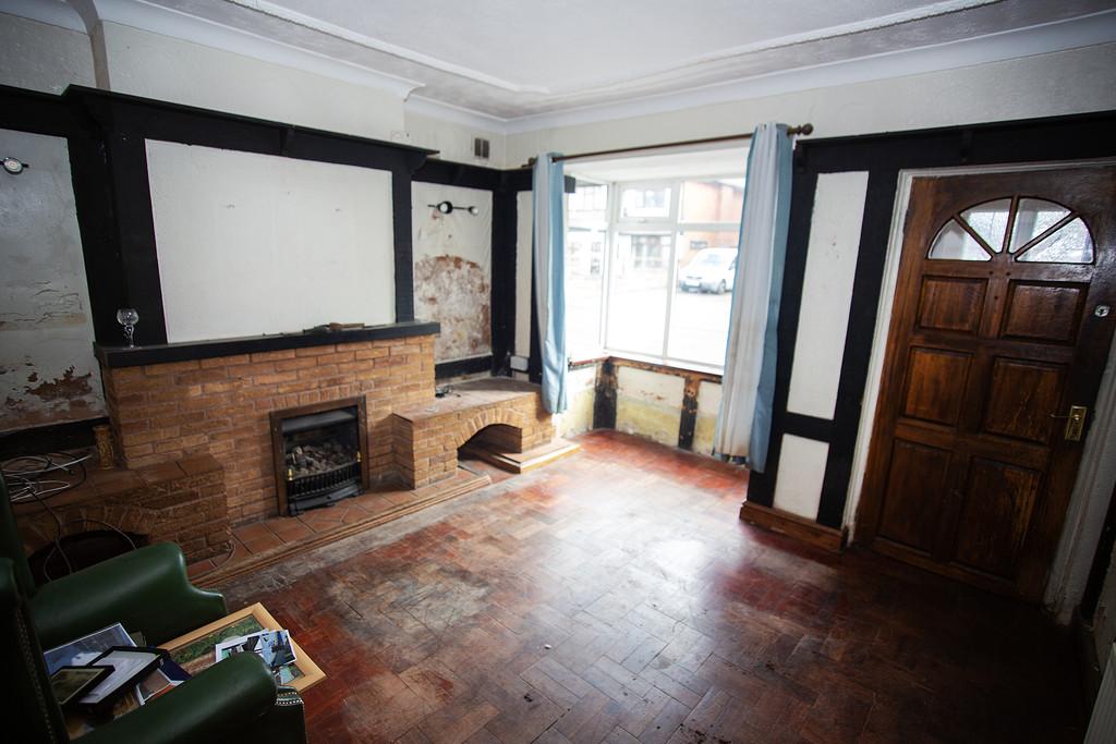 LOUNGE 11' 3" x 9' 10" (3.45m x 3,71m) The Lounge is a good sized space with most of its original features including the parquet flooring and beams to the walls.It has coving and ornate ceiling details and a brick-built fireplace which houses the gas fire. There is a large uPVC double glazed bay window allowing natural light into the room. In need of modernisation, however, this is a lovely sized room which oozes character with lots of potential.