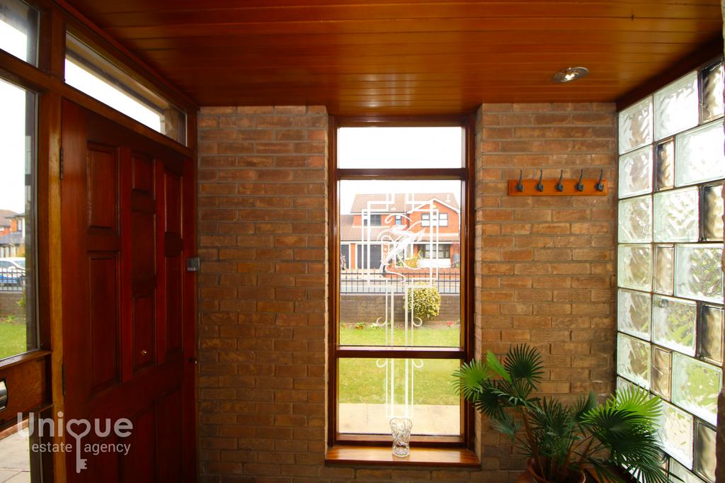 Upon approach you notice the unique property imposing itself on the road with double driveway leading to the double garage with electric automatic doors framed with well kept lawn and path leading to the front door.