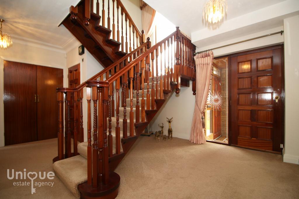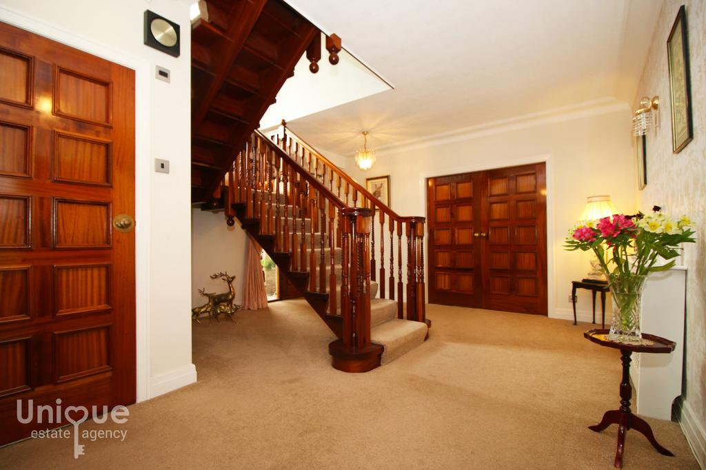Stepping through the beautifully etched glass panelled porch with opens up into the propertys grand hallway with the striking staircase the focal point ideal for greeting guests.