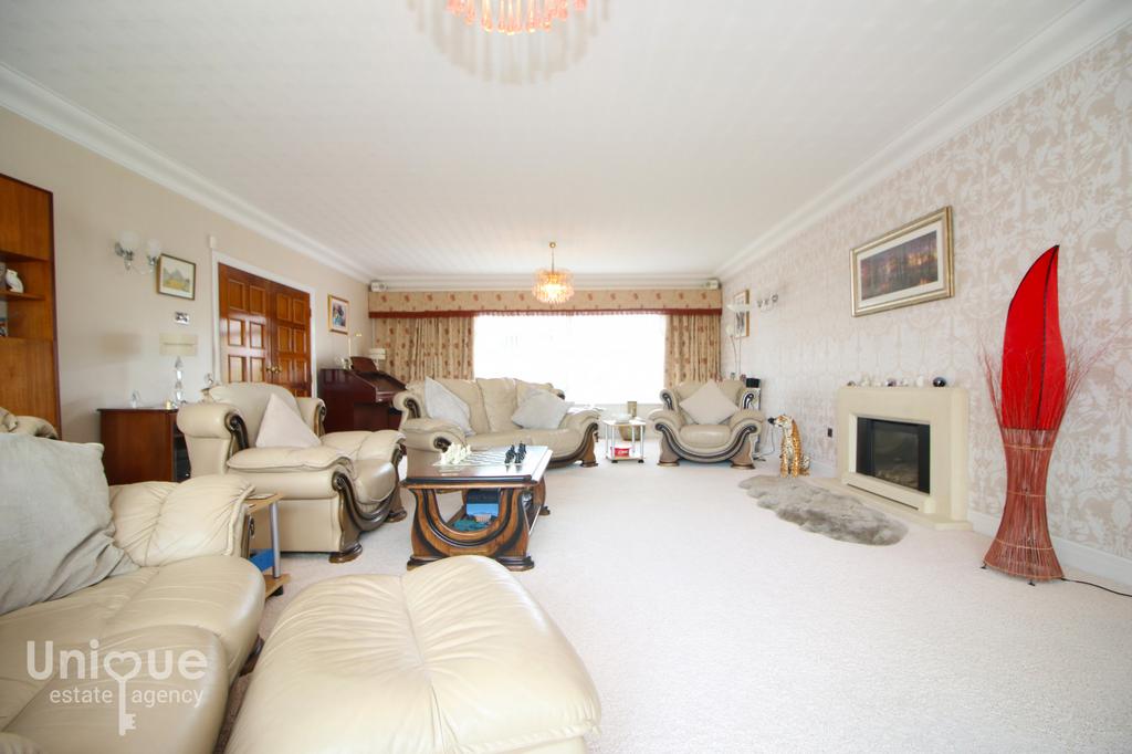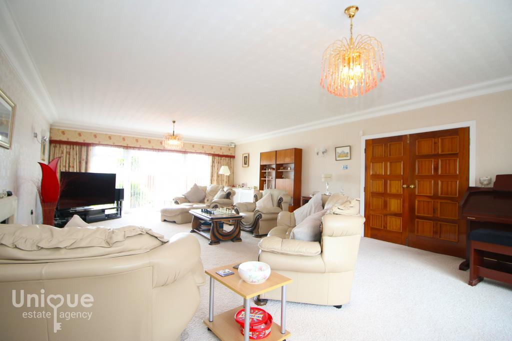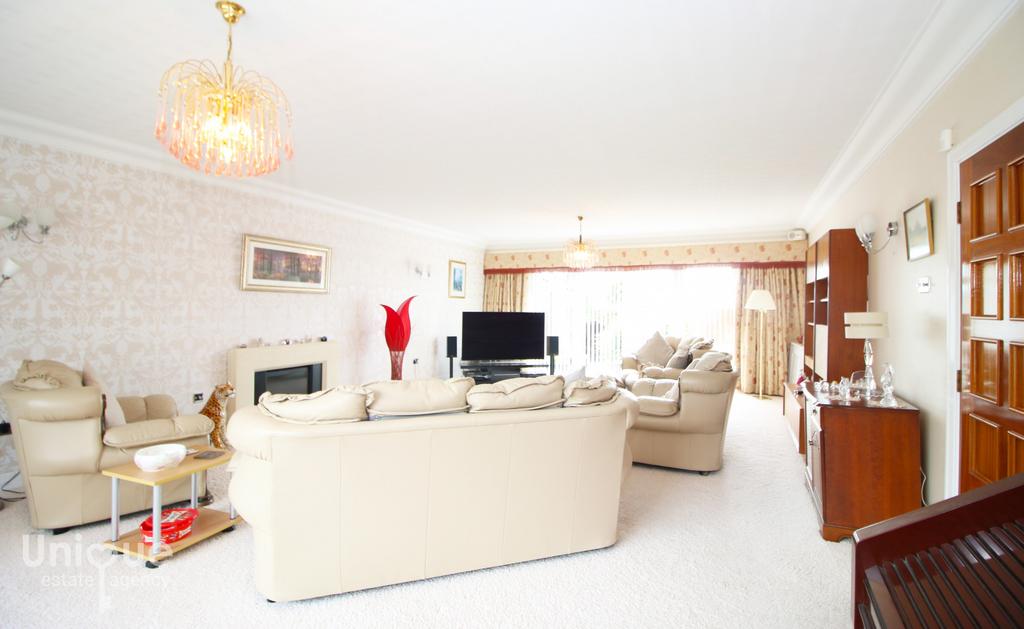 Taking the double doors on the left reveals the exceptionally spacious lounge with plush carpet and illuminated via the large window overlooking the front elevation and patio doors that lead into the rear garden.