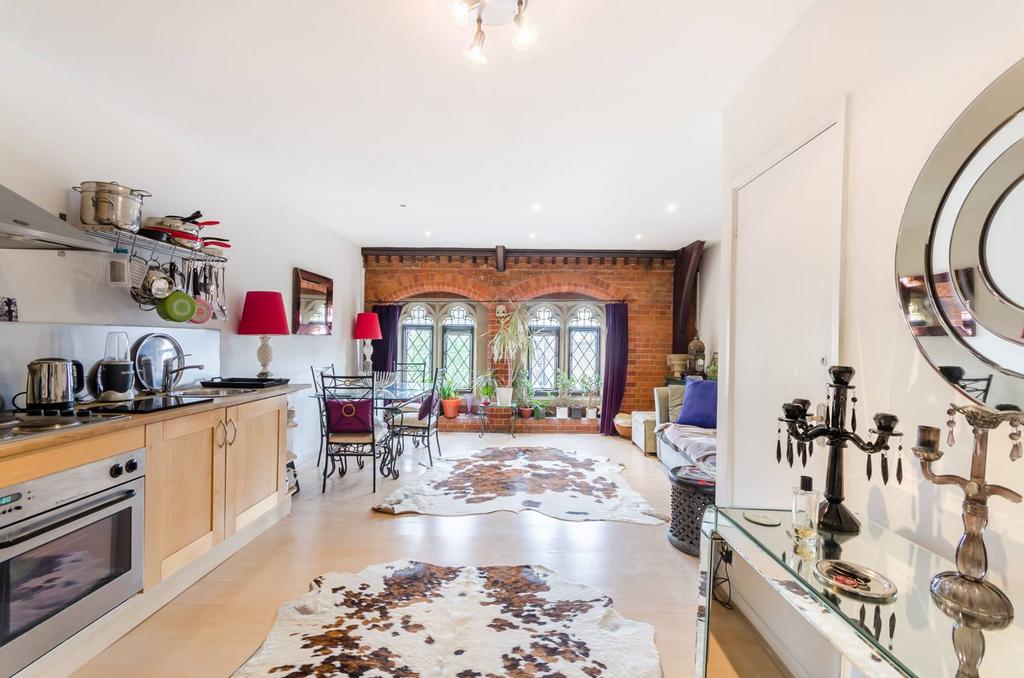LONG LET. This impressively sized 1 bedroom flat is arranged over 2 floors within a fantastic church conversion and includes charming original features including ornate decorative windows and wood beams.