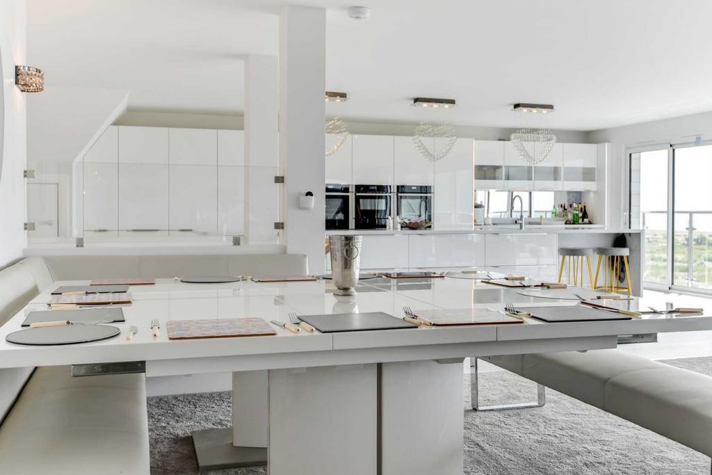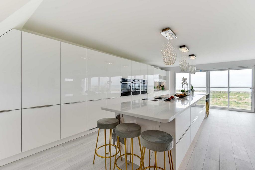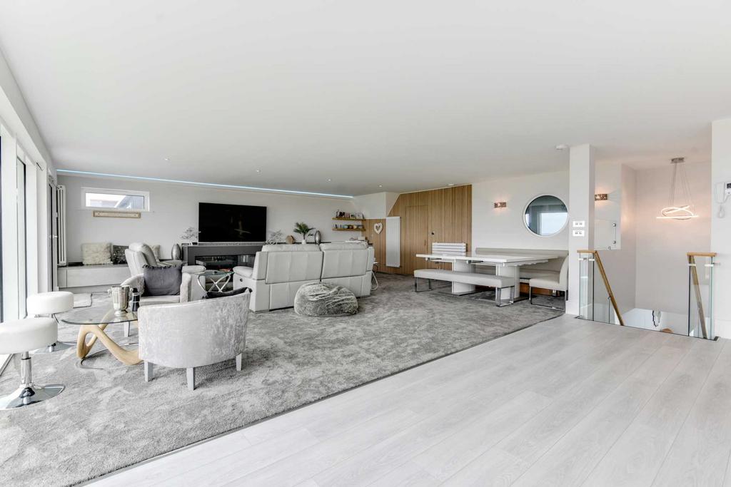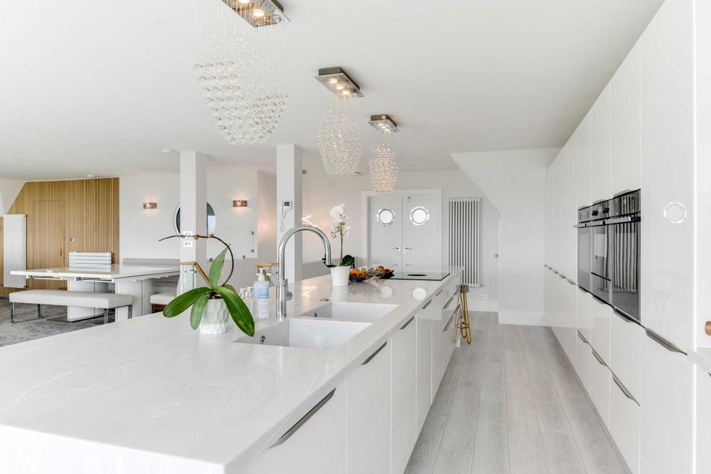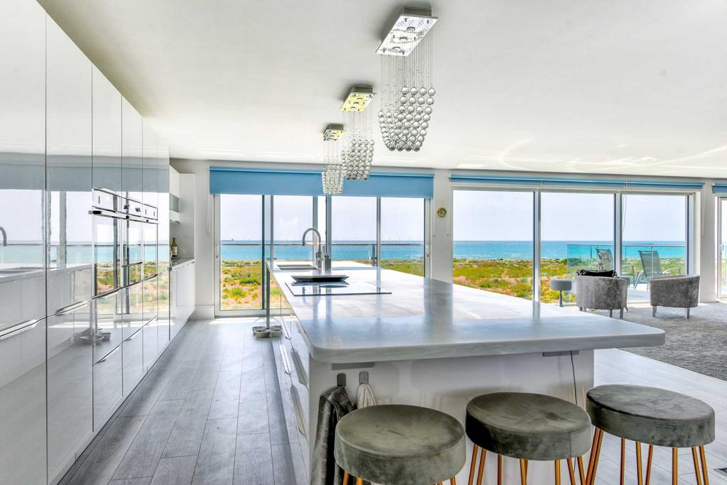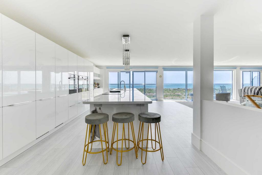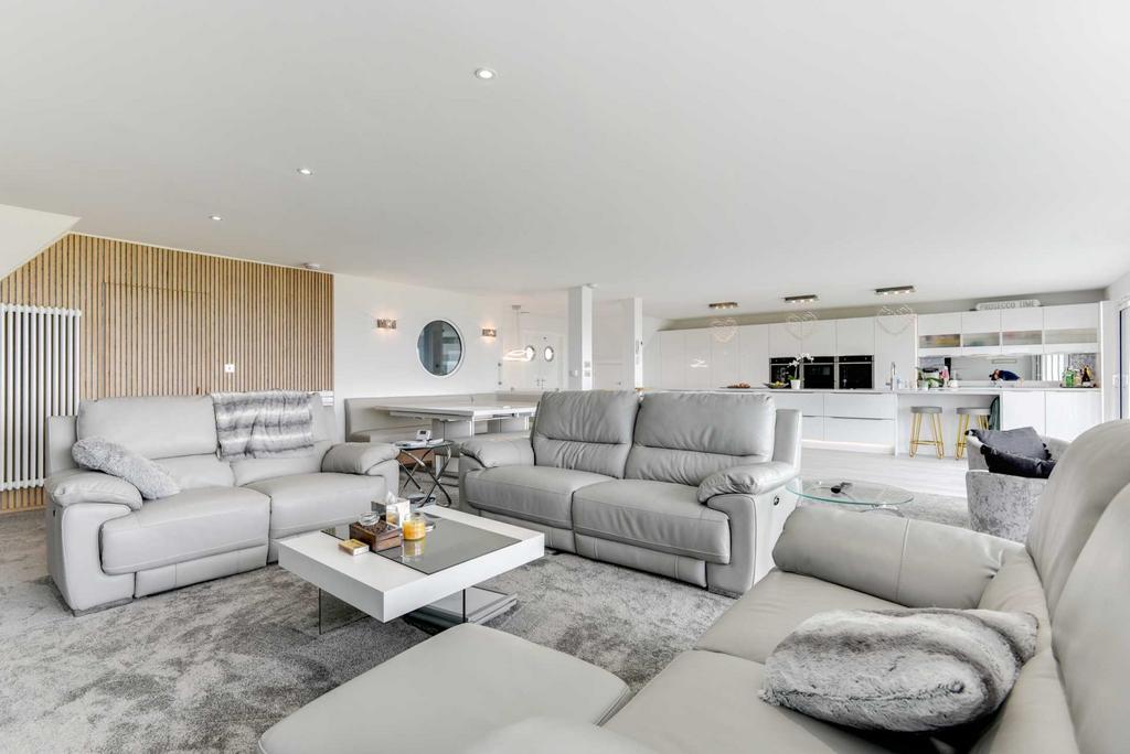 Large open plan kitchen/diner/lounge area with amazing sea views .