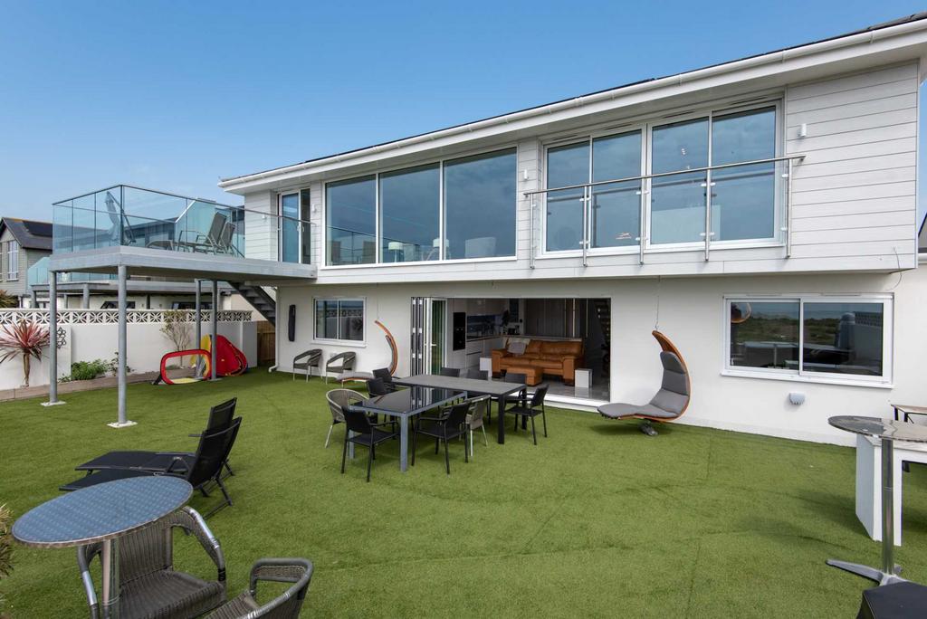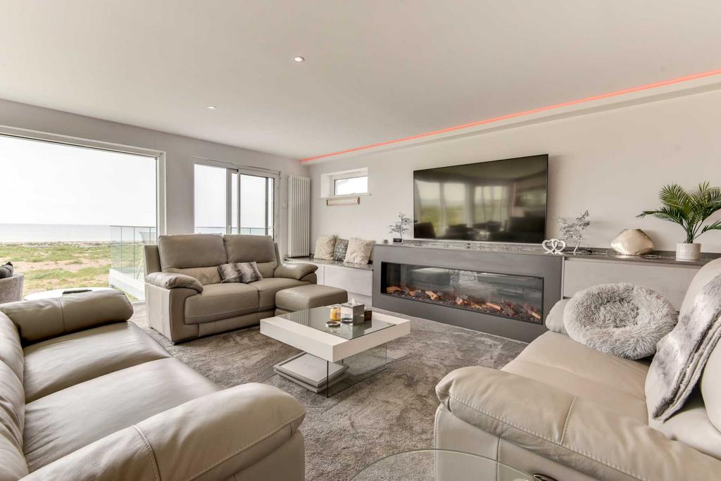 This stunning 5 bedroom House sits directly on Shoreham Beach and boasts a large private Hot Tub, 5 hole mini golf, 2 balconies, 2 kitchens, smart TVs .