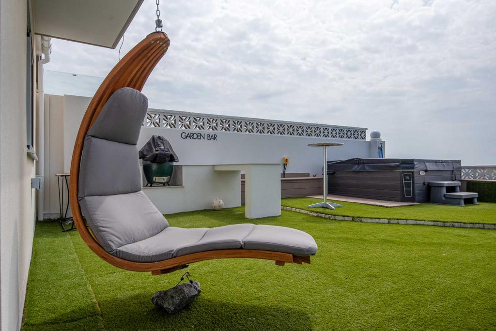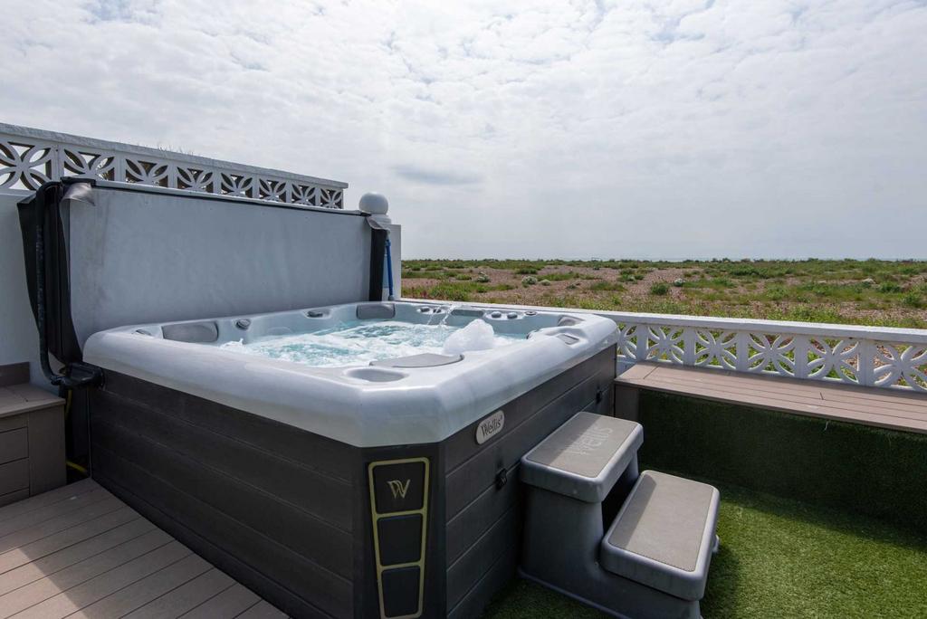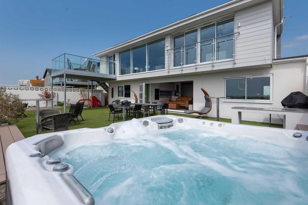 Hot Tub seats 6/7 guests at a time complete with a lounger overlooking the sea. Use up to 10pm only for neighbour respect.
