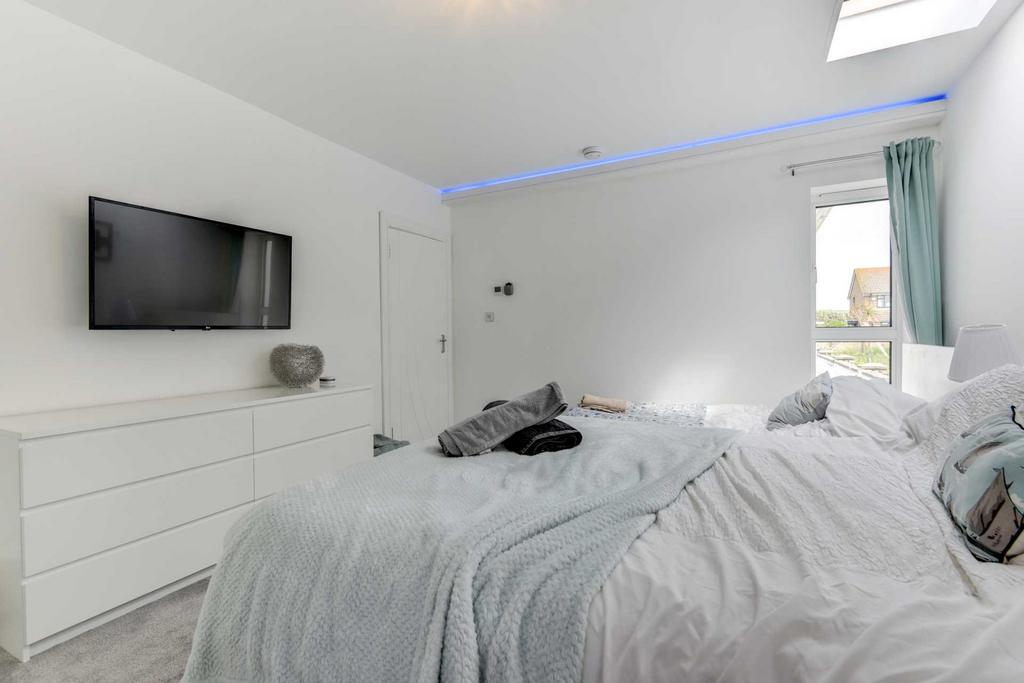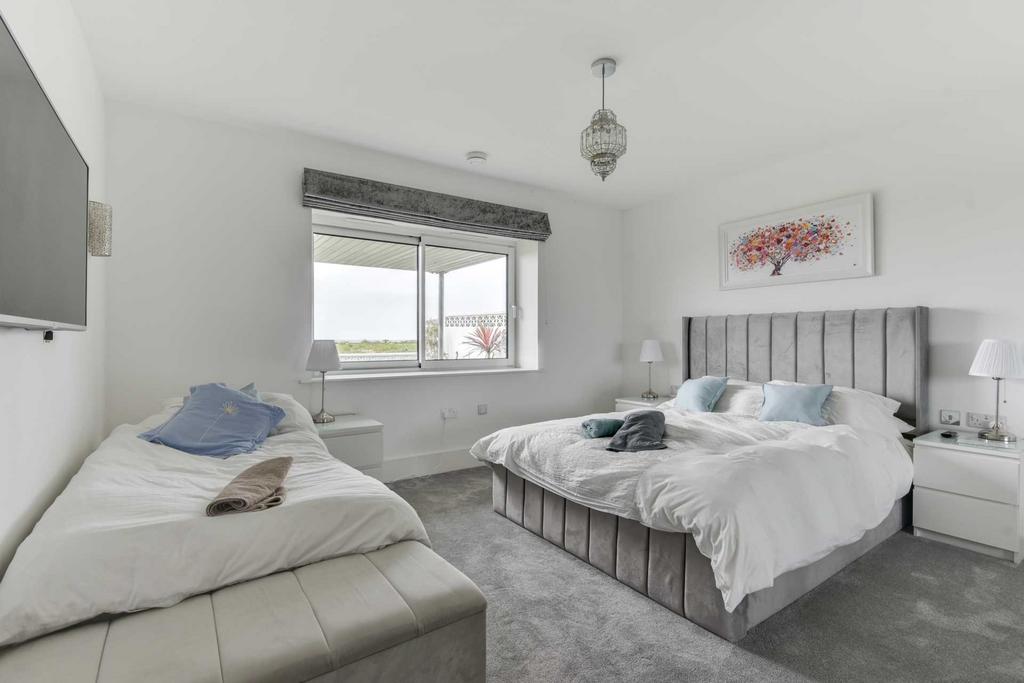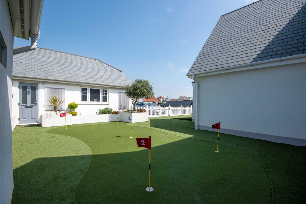 5 bedrooms, 4 on ground floor 1 on first floor. Lots of sea views and mood lighting throughout the property. Beautiful garden with artificial grass to the back of house perfect for sun bathing and grassed at front surrounded by a picket fence.