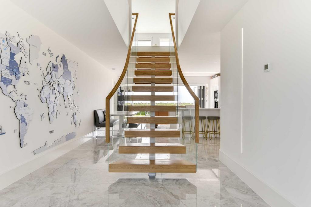 Grand Lobby with central staircase in the central Beach room. The Beach room is the 2nd kitchen in the house and has bifolds leading directly to the garden.