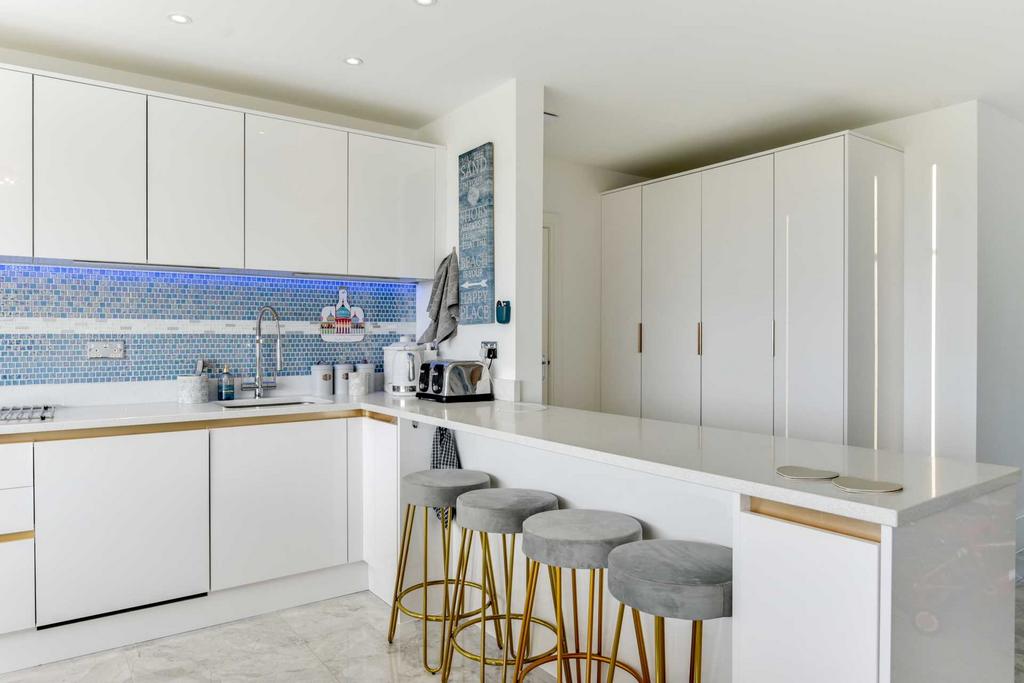 With mood lighting throughout you will loveThe Gables at Seaside Place on Shoreham Beach.