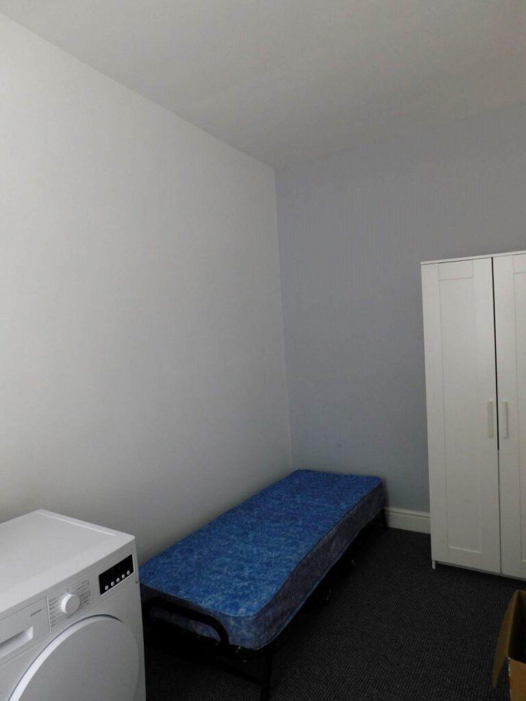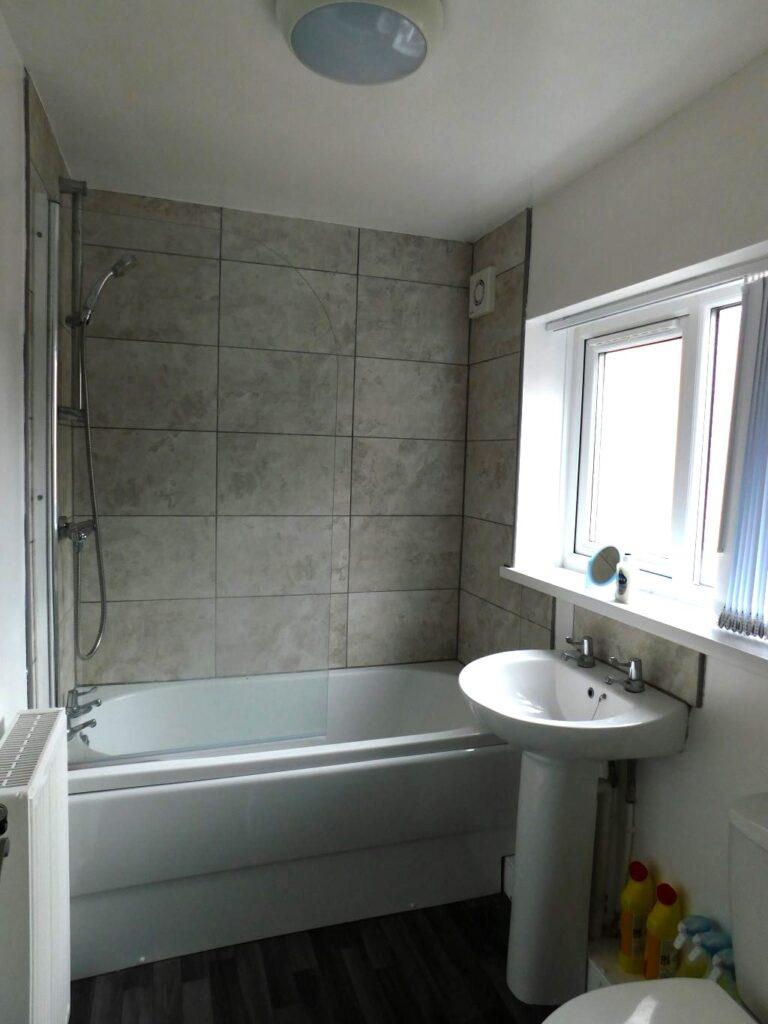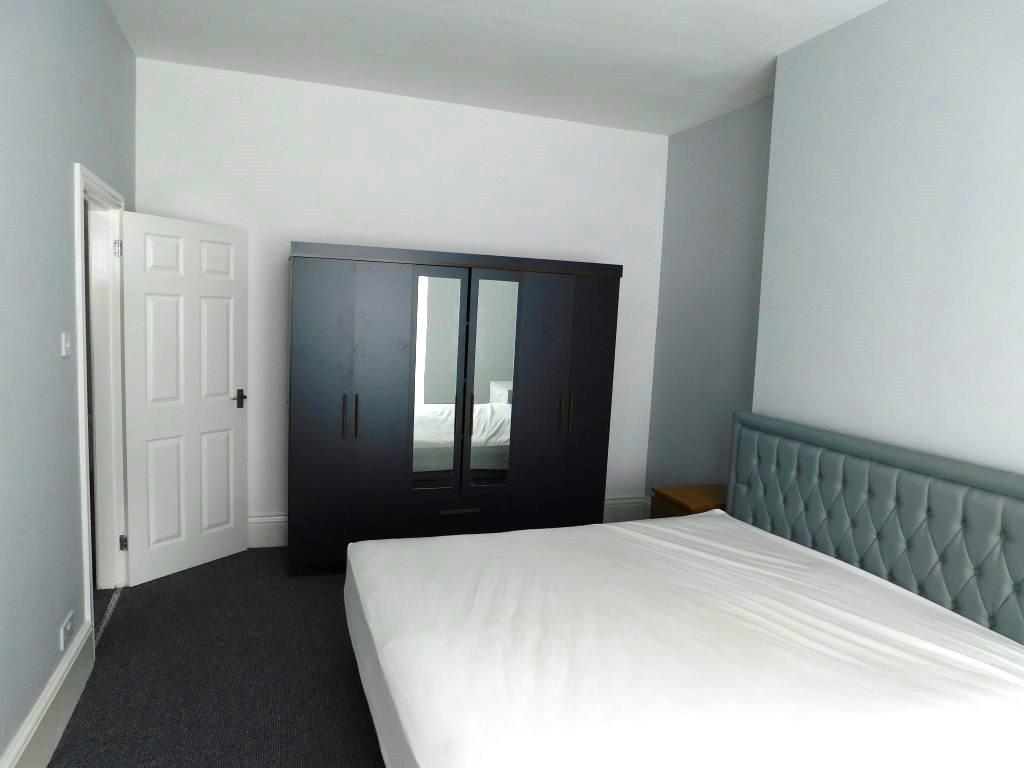 Briefly comprising, a good sized lounge with sofas, electric fire, TV, and drawers. The kitchen includes white goods, plenty of storage space with a range of wall and floor units and tiled splash back. There are 2 double bedrooms, 1 with bed and wardrobe, the second with wardrobe and dryer. The third bedroom is unfurnished. The bathroom has shower over the bath. There is a shared yard and on street parking.