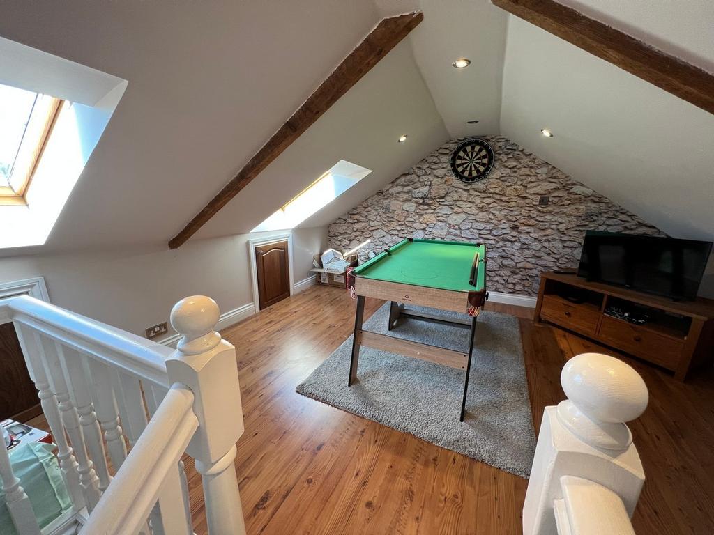 Full width and depth of the main property with plastered emulsion décor, one feature wall papered, plastered emulsion ceiling with recess lighting, laminate flooring, spindled balustrade, generous concealed storage within eaves, electric power points, two genuine Velux double-glazed skylight windows with made to measure blinds.