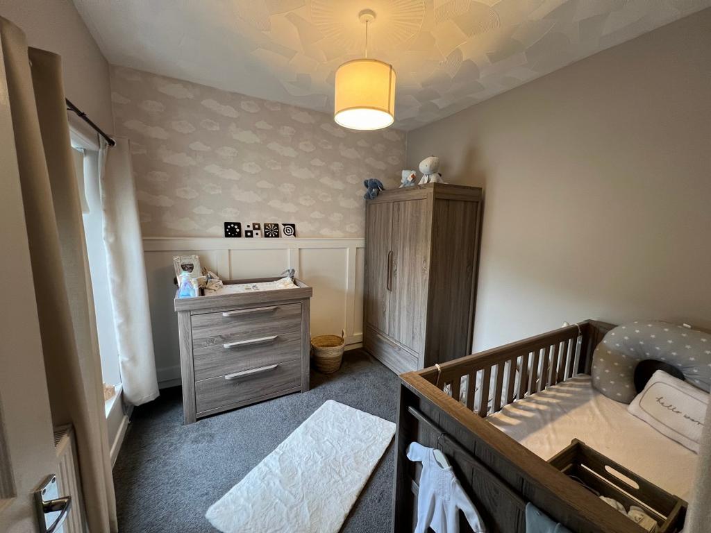 UPVC double-glazed window to rear overlooking rear gardens with unspoilt views, plastered emulsion décor with one feature wall papered, patterned artex ceiling, quality fitted carpet, radiator, ample electric power points.