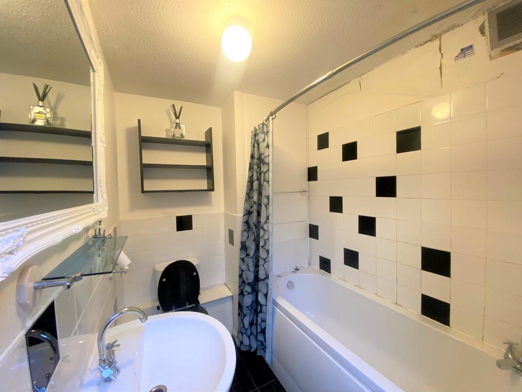 Bathroom - Bathroom comprises of wash hand basin, w/c with dual flush and bath with overhead shower. partially tiled. Vinyl flooring and lighting point.