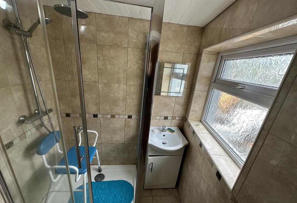 A large open living room area leading into a spacious dining and kitchen area. To the back of the property is a floor to ceiling modern tiled shower room.