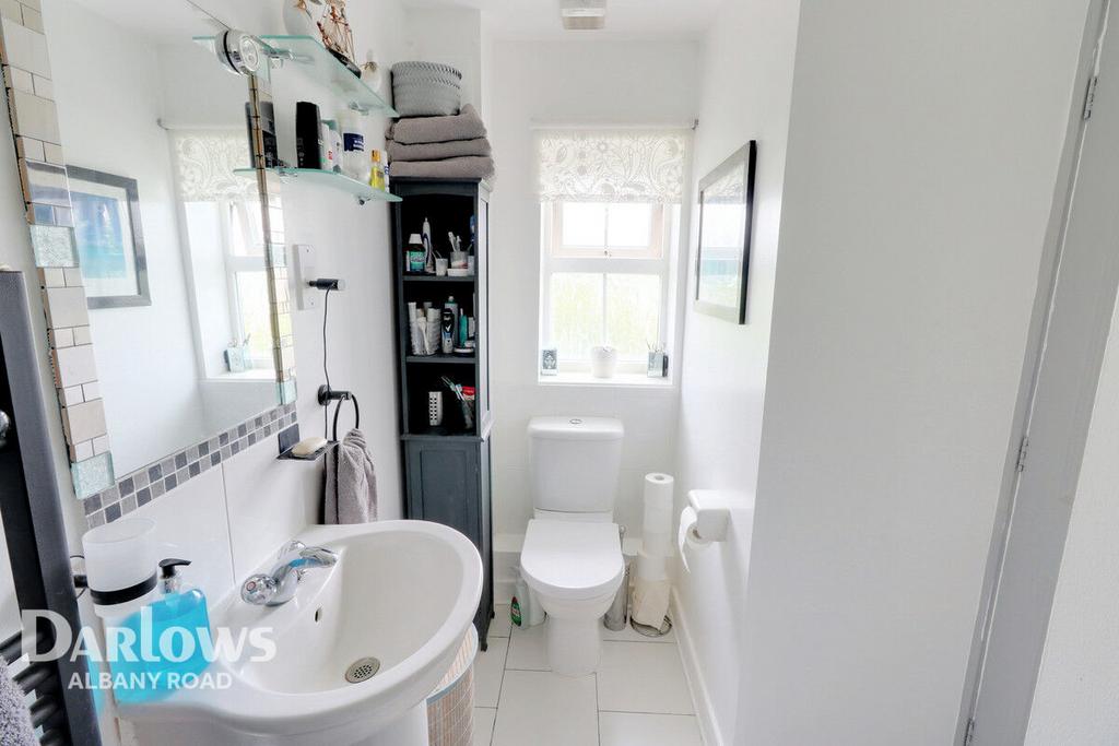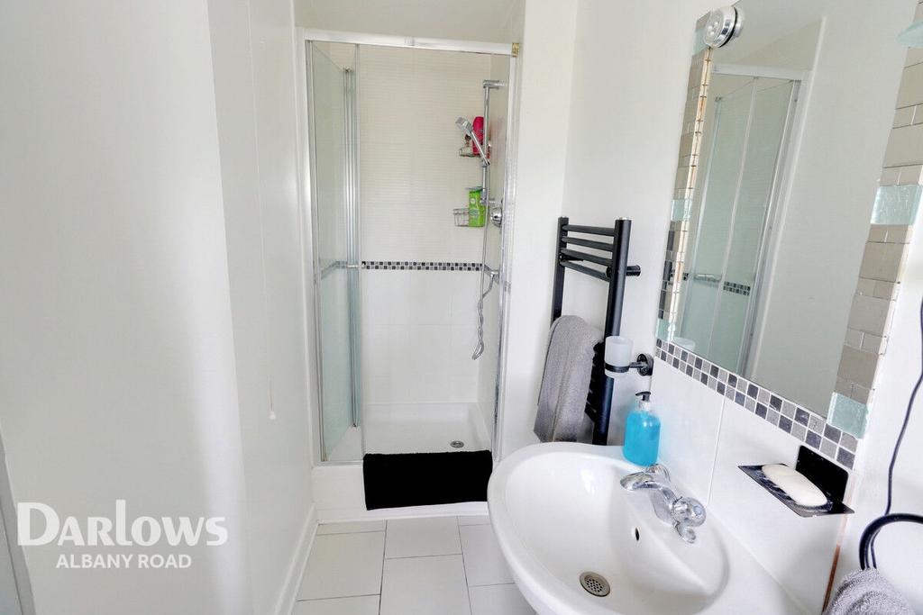 Located of the master bedroom the Ensuite comprises of a WC, shower cubicle and hand basin with tiled splash back. Frosted double glazed window and a wall mounted heated towel rail.