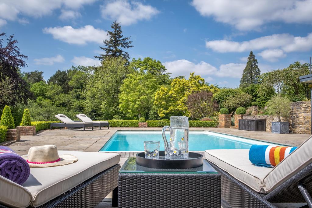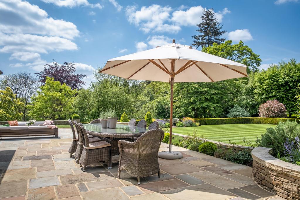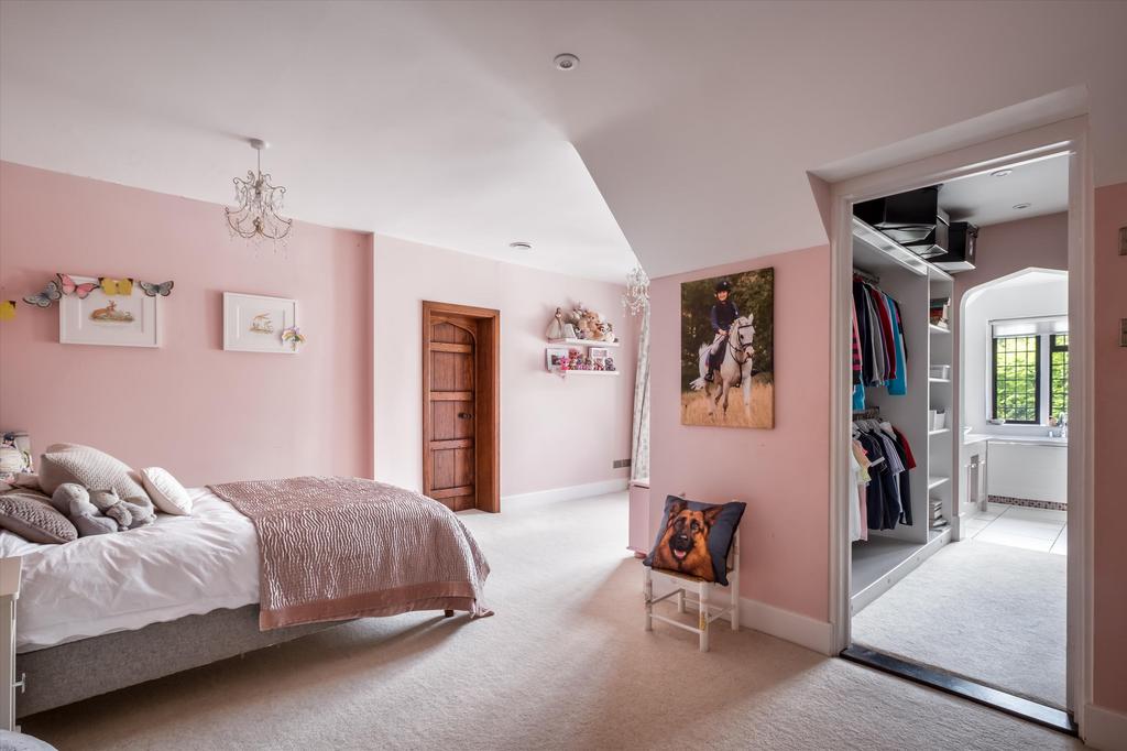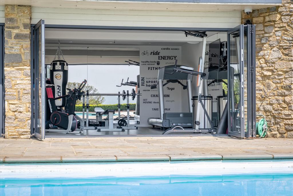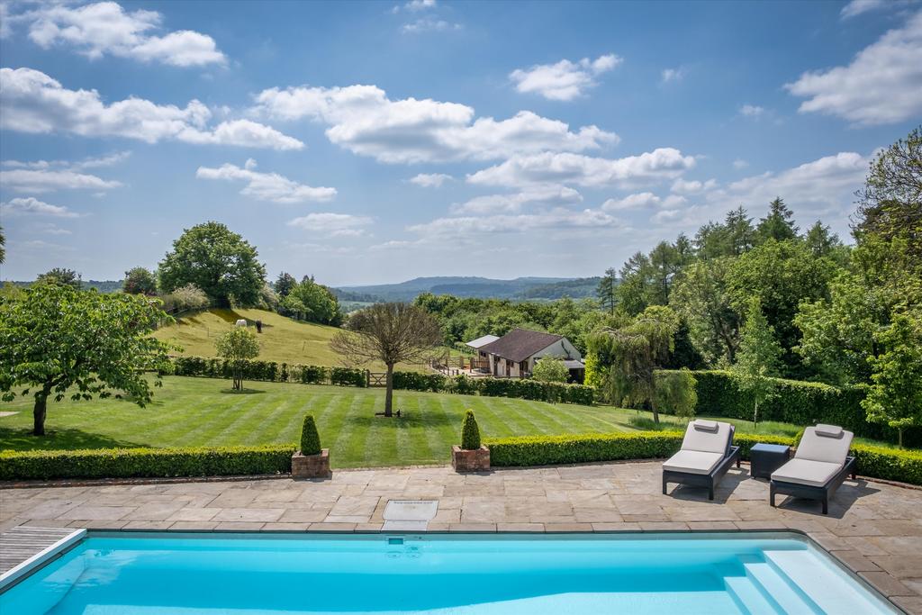 The splendid south and west-facing gardens and grounds extend to over 4 acres which comprise a large wrap-around terrace and formal manicured gardens, a tennis court, swimming pool, gym with putting green above for those golf enthusiasts as well as a children's play area. Beyond the more formal gardens and lawns are the paddocks, complete with two stables, feed and tack rooms, as well as hay and log stores. The rear of the house, large terrace area and swimming pool all face south with far-reaching views