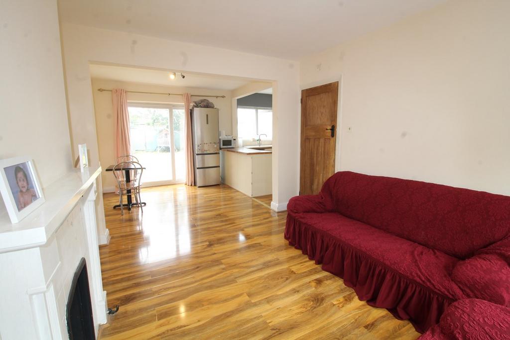 Double glazed casement windows to front, double glazed casement window overlooking rear garden, two radiators, original tiled fireplace, mantel and marble hearth, contemporary style fitted wall and base units with laminate worktops housing single drainer sink unit with mixer tap and tiled splashback, stainless steel oven, stainless steel gas hob, stainless steel cooker hood, washing machine, fridge/freezer, new combination boiler, laminate flooring, power points, double glazed sliding patio doors to rear garden.