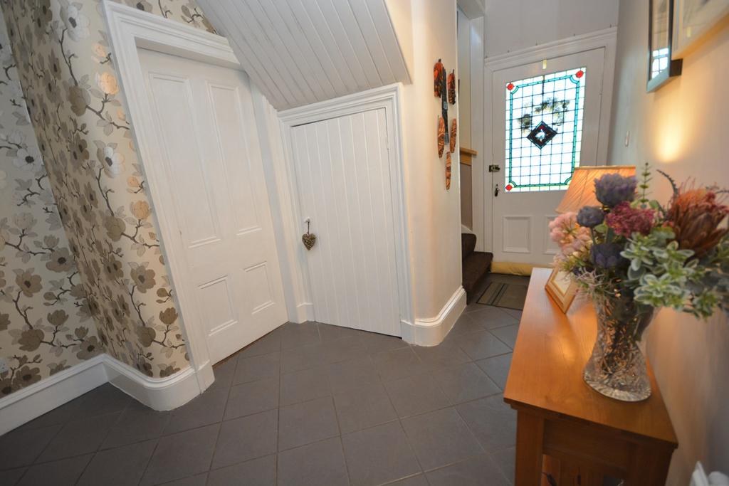 4.27m x 3.07m (14' 0" x 10' 1") Access is given via an outer storm door to a welcoming entrance porch offering neutral décor and original traditional tiling with a stunning feature stain glass inner doorway leading to the hallway. The grand hallway boasts soft neutral décor, traditional high ceiling, ceiling cornicing, high traditional skirting boards, practical understairs storage cupboard and tiled flooring. The hallway gives access to the lounge, bedroom one, bathroom and a carpeted staircase leads to the upper level.