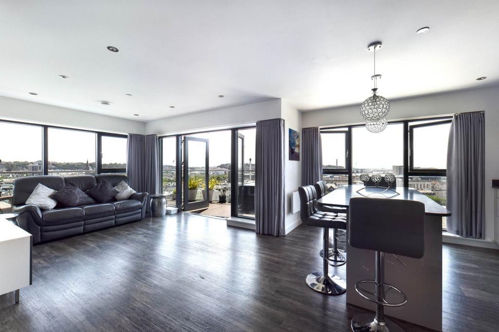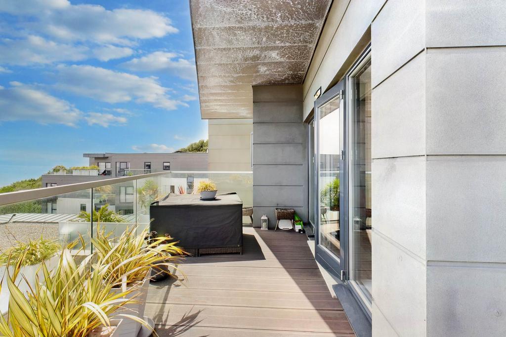 This superb level nine penthouse apartment, with stunning balcony, enjoys both town and sea views. Almost as new, this lovely apartment is offered in excellent condition throughout. In a convenient location with ease of walking access to town and beach, this most attractive contemporary development is still very much in demand. Open plan the living space is very bright and offers a generous space to entertain friends with the wow factor of roof top views over town and direct view to Elizabeth castle. The apartment also consists of three double bedrooms and two bathrooms, one en-suite in addition to the house bathroom. Outdoor space is provided with a spacious wrap around balcony which maximises the amazing panoramic views. Further benefiting from two under ground parking spaces and direct gym access on the ground floor (same bloc). Viewing of this prestigious apartment is essential.