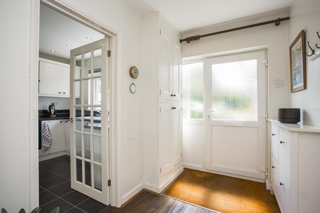 ENTRANCE HALL: Coir entrance matting, cupboard housing consumer unit and smart meters, further storage cupboard, coats hanging area, loft access, smoke detector and exposed wood flooring.