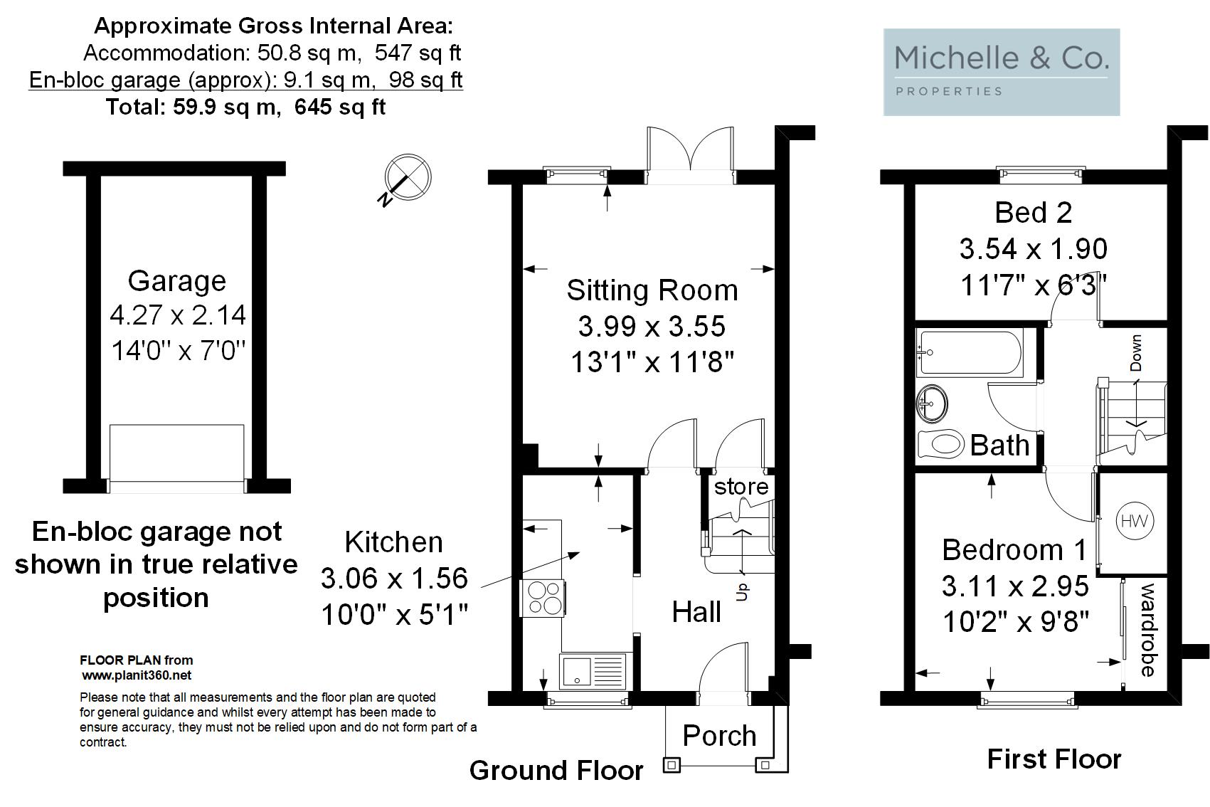 Accommodation in Brief: Entrance hall, kitchen, sitting/dining room with French doors out to the rear, double bedroom with fitted wardrobes, single bedroom, bathroom with bath and shower, level garden with lovely views, parking, single garage.