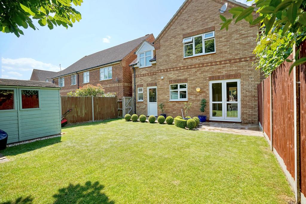 To the front of the property a block paved driveway provides off road parking provision. The front garden is open plan and laid to lawn with planting and outside lighting. Side gated access leads to the rear garden which is laid to lawn with garden shed, patio area, outside tap and lighting, The rear garden is enclosed by panel fencing.
