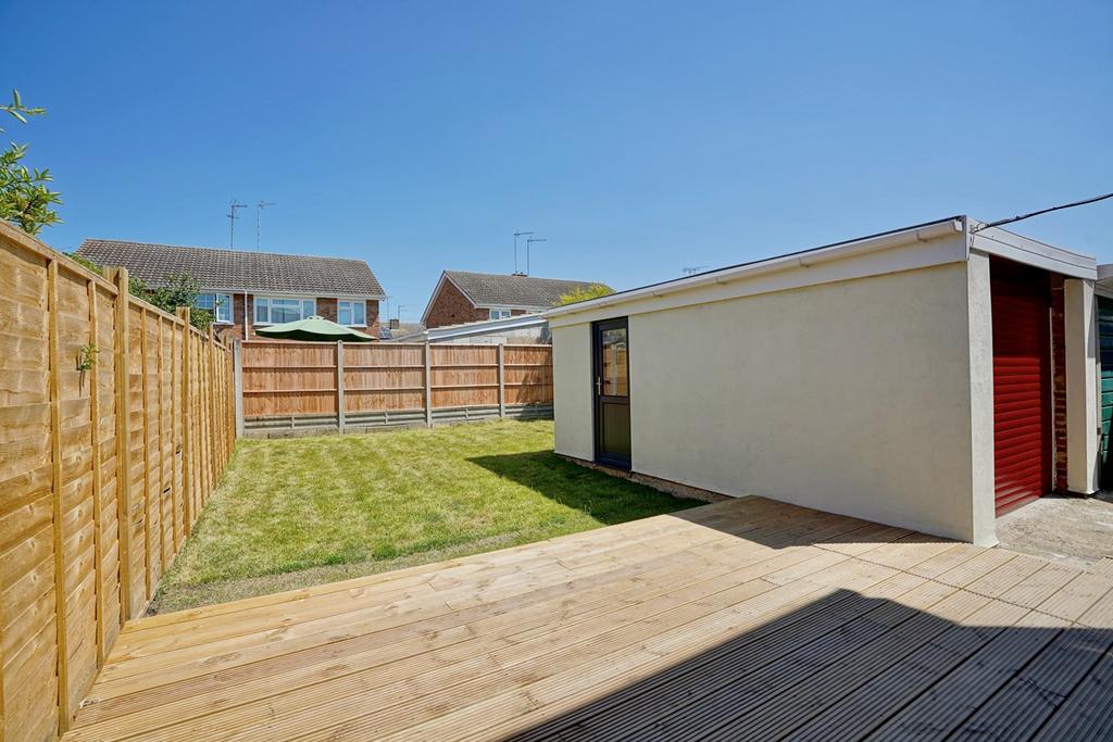 To the front is an extensive drive way giving provision for several vehicles and a pleasant area of shaped lawn. There is a Single Garage retaining up and over door but part-converted and dry-lined to produce a potential working from home space. The rear garden has an extensive timber decked seating area, shaped lawns, outside lighting and measuring approximately 39' 4" x 32' 10" (11.99m x 10.01m) enclosed by new panel fencing.